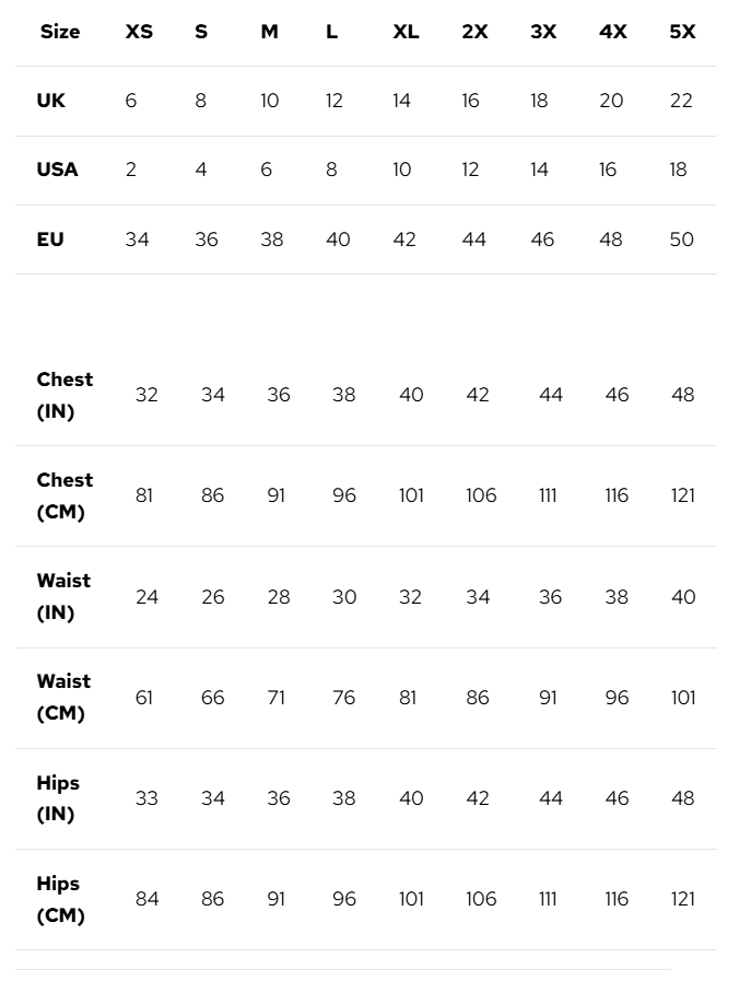Find your size here to see which one matches your usual size in your chosen country.